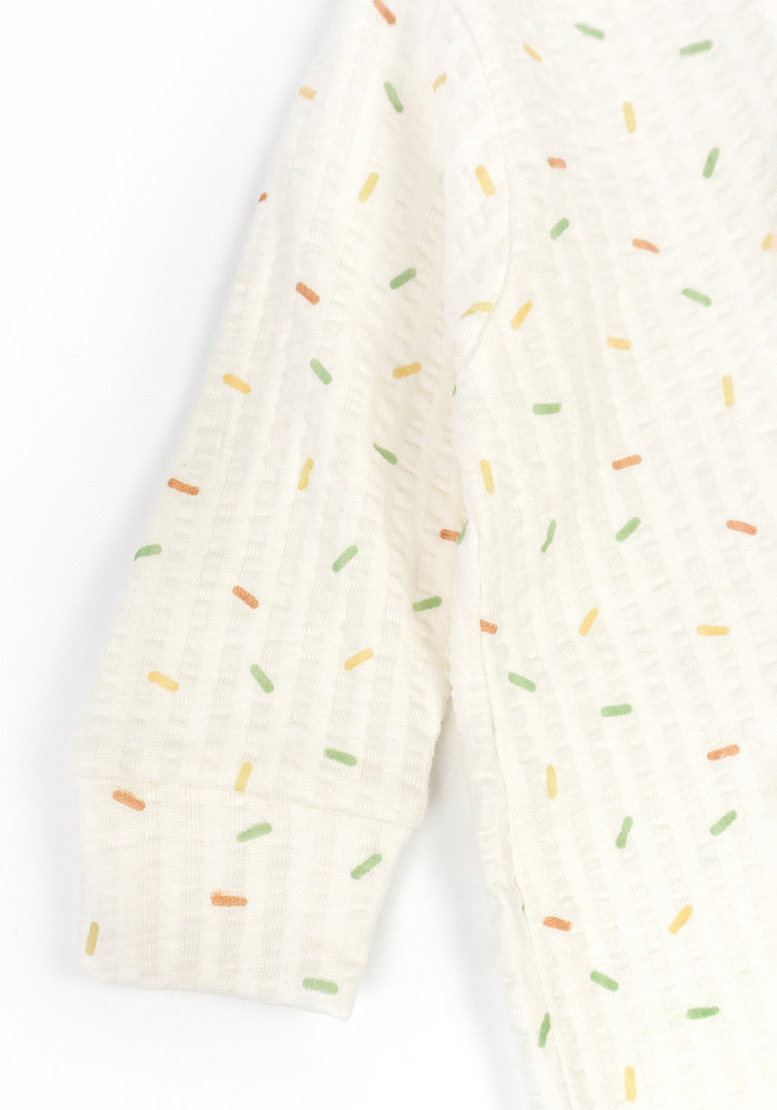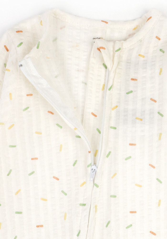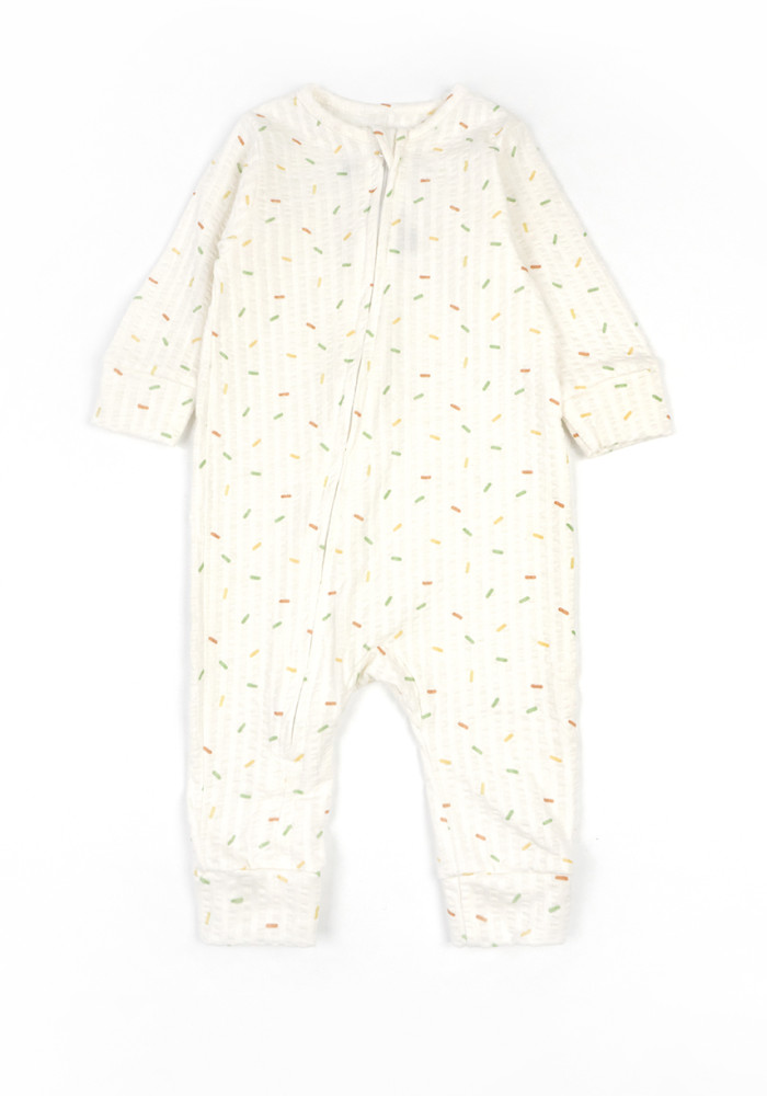 Практичный и стильный комбинезон для новорожденных на молнии в молочном цвете с принтом конфетти подходит для малышей от 3 месяцев до 1,5 лет. Универсальный дизайн идеально подойдет как для мальчика, так и для девочки.